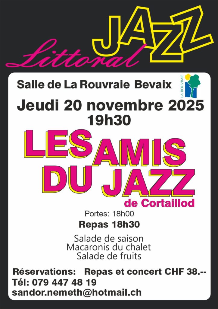 Plongez dans l’univers chaleureux des Amis du Jazz de Cortaillod, qui feront vibrer la Salle de La Rouvraie à Bevaix le jeudi 20 novembre 2025.